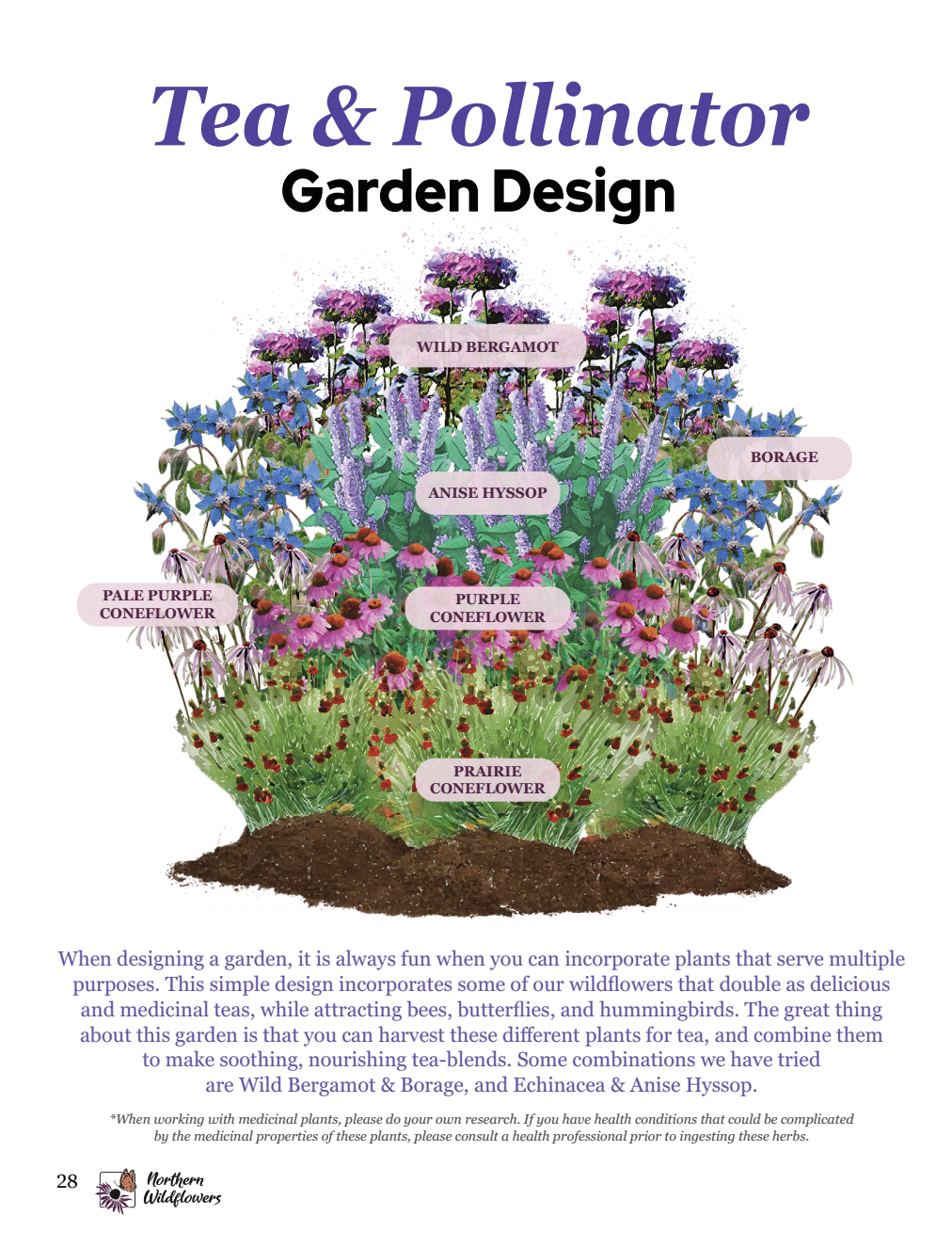 This full sun collection is curated with 5 wildflower varieties that can be dried or used fresh to make delicious hot or cold teas. This collection includes wildflowers that belong to the Mint and Echinacea family.