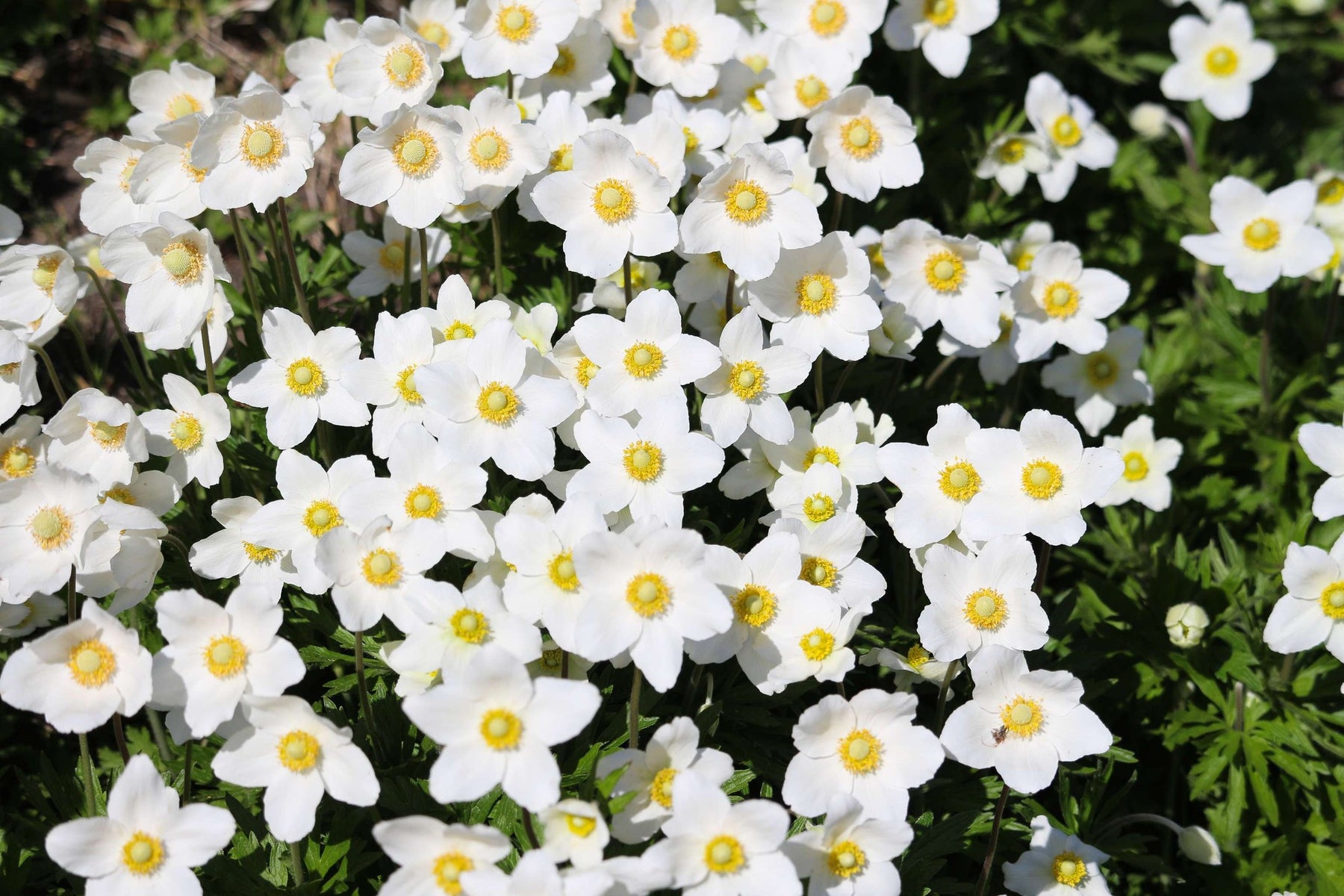 L'anémone du Canada ( Anemone canadensis ) est votre choix pour un couvre-sol indigène court et robuste. Les touffes surpeuplées peuvent être divisées à l'automne pour maximiser la floraison. Les fleurs printanières sont fantaisistes et abondantes et le feuillage restant est attrayant jusqu'à l'automne. L'anémone du Canada peut être agressive, alors planifiez soigneusement sa position dans votre jardin. Ne confondez pas l'anémone du Canada avec d'autres plantes comestibles à faible croissance, car toutes les parties de cette plante sont toxiques.