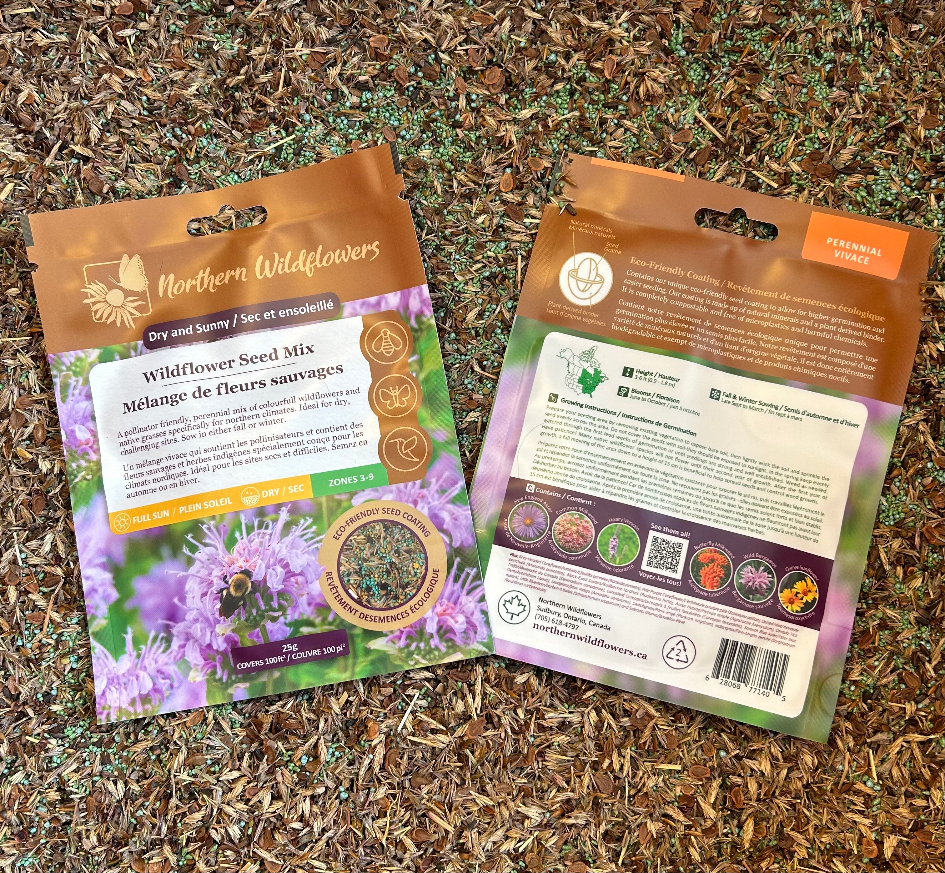 Enfin un mélange de fleurs sauvages qui prospérera dans les jardins canadiens ! Nos mélanges de fleurs sauvages sont formulés avec un rapport idéal entre les espèces de fleurs sauvages et de graminées et la quantité appropriée de semences pour votre site d'application. Nos mélanges contiennent des fleurs de printemps, d'été et d'automne dans une variété de couleurs pour fournir un approvisionnement continu en nectar pour les pollinisateurs.